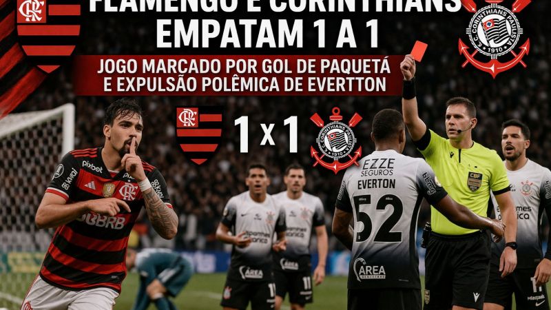 O Flamengo empatou em 1 a 1 com o Corinthians na Neo Química Arena, em jogo realizado no domingo, e deixou escapar a chance de subir na tabela após abrir o placar com Paquetá.